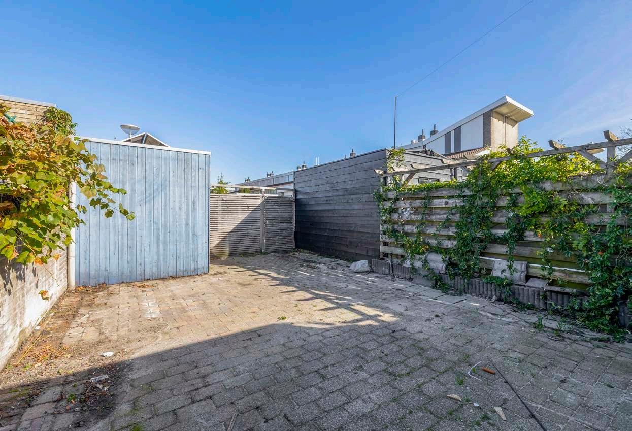 De woning beschikt over een zonnige tuin met een handige berging, ideaal voor extra opslag of als hobbyruimte.