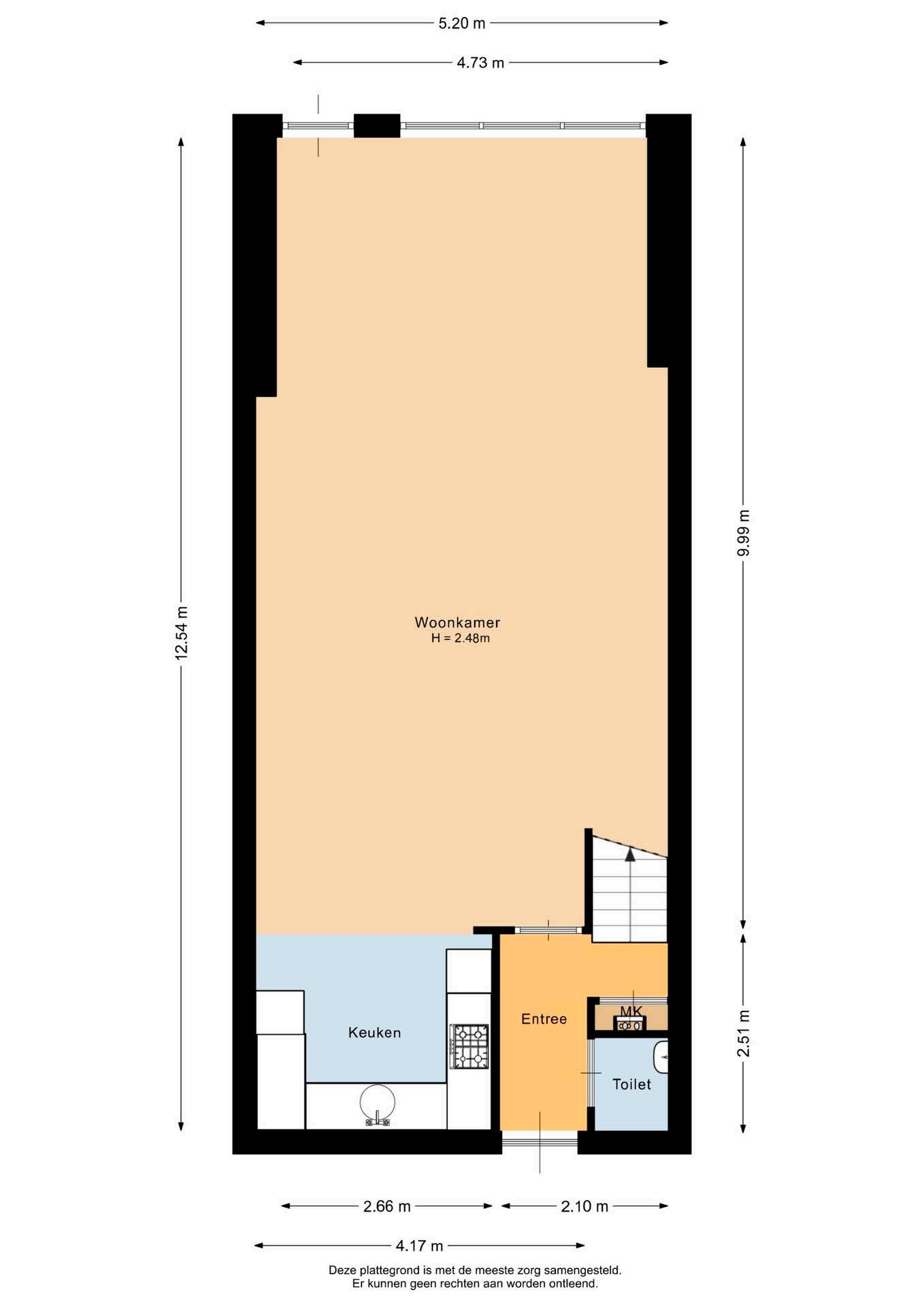 De begane grond bestaat uit een entree met garderobe en een toilet. Vanuit de hal kom je in de uitgebouwde woonkamer met prettige lichtinval.