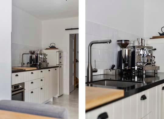 De keuken is uitgerust met inbouwapparatuur zoals een inductiekookplaat en vaatwasmachine. Dankzij veel opbergruimte en een diep werkblad is de keuken zowel functioneel als gezellig. De boeren schuifdeur zorgt voor een unieke touch en biedt toegang tot de tuin.