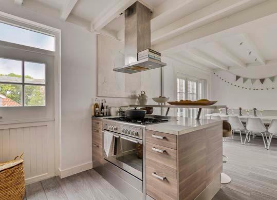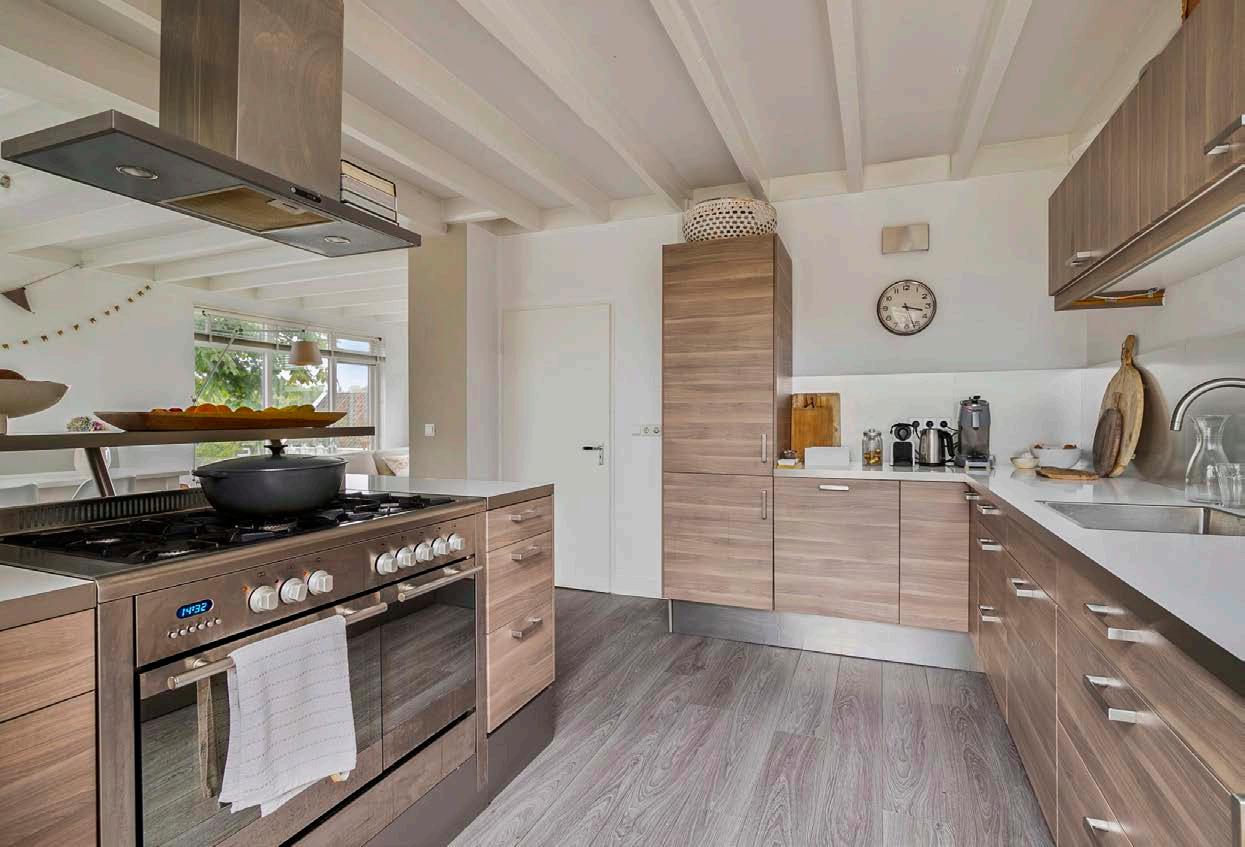 In deze luxe keuken, met gezellig bar-element, heeft u meer dan genoeg opbergruimte voor uw keukengerei dankzij de vele kastjes en lades. De keuken is van alle gemakken voorzien dankzij diverse apparatuur. Hier wordt kokkerellen een feestje!