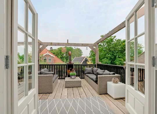 Ruim dakterras met panoramisch uitzicht over het waterrijke en landelijk Ilpendam. Het dakterras is gelegen op het zuidwesten waar je heerlijk tot laat kan genieten van het zonnetje.