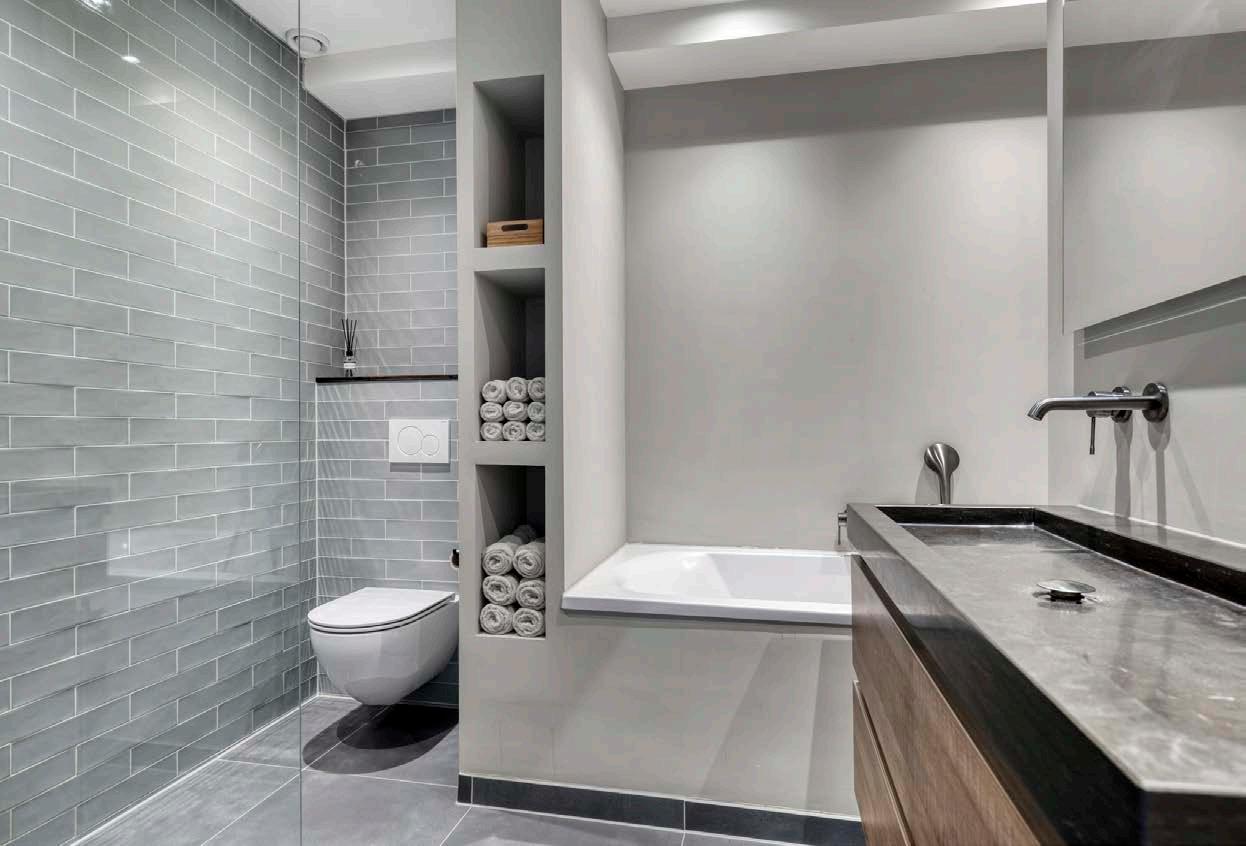 Beneden vindt u de moderne badkamer. Deze ruimte is ontworpen met comfort en luxe in gedachten. Het ruime wastafelmeubel biedt niet alleen een strakke uitstraling maar ook voldoende opbergruimte. De stijlvolle inloopdouche wordt vergezeld door een heerlijk ligbad; perfect voor een ontspannen avond na een lange dag. Extra handig: de badkamer beschikt over een tweede toilet, wat heerlijk praktisch is als er meerdere mensen in huis zijn.