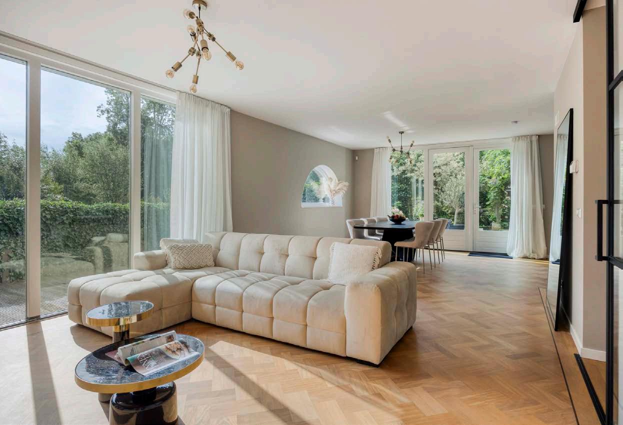 De **woonkamer** is ruim en licht, met grote raampartijen die een panoramisch uitzicht bieden en tegelijkertijd voor een fijne verbinding met buiten zorgen. Jij profiteert van een royale leefruimte waar plek is voor de grootste hoekbank of zelfs een aparte werk- of speelplek.