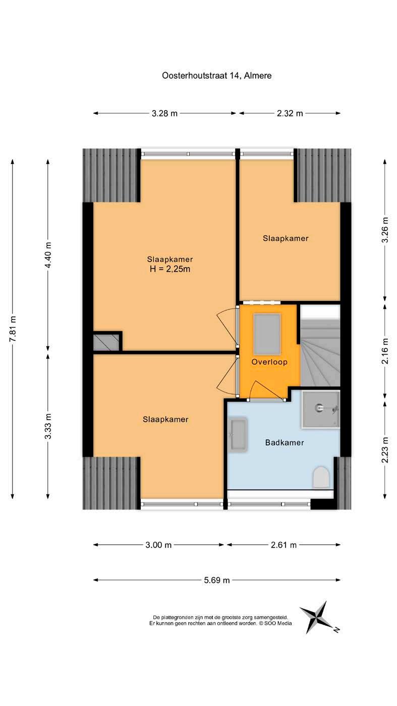De woning beschikt over 3 slaapkamers, 2 aan de achterzijde en 1 aan de voorzijde. De dakkapellen aan de voor en achterzijde geven een fijne lichtinval. Alle slaapkamers zijn voorzien van rolluiken. De badkamer beschikt over een wastafel, douche en toilet. Er is tevens een aansluiting voor een bad aanwezig.