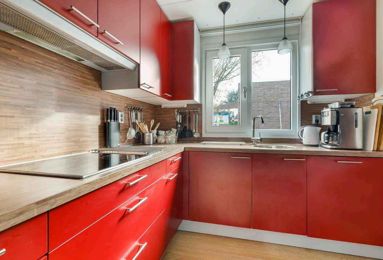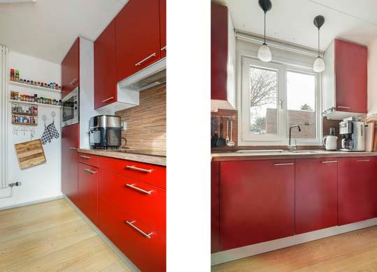 De keuken bevindt zich aan de voorzijde in de voormalige berging. Kookliefhebbers kunnen zich hier helemaal uitleven. Overal is aan gedacht, een magnetron, vaatwasser en keramische kookplaat.