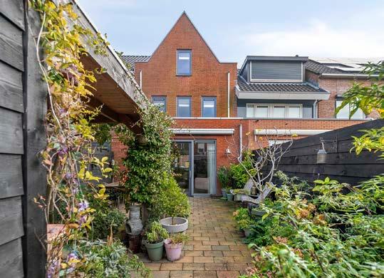 De zonnige tuin op het zuidwesten is een heerlijke plek om te ontspannen. Dankzij de overkapping zit je hier al vroeg in het voorjaar en tot laat in de zomer buiten. De aangrenzende berging biedt handige opbergruimte voor tuinkussens, fietsen of gereedschap.