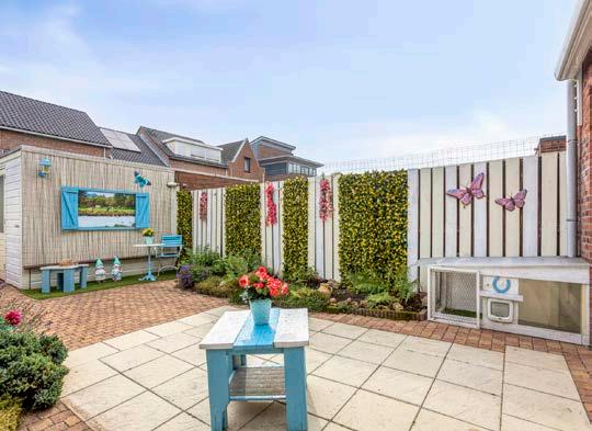 De achtertuin ligt op het noordoosten: heerlijk ochtend- en middagzon, en met het elektrische zonnescherm creëer je eenvoudig schaduw. Via de achterom sta je zo buiten en in de houten berging stal je fietsen en tuingereedschap.