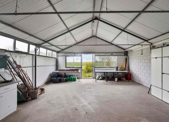 Naast de comfortabele woonruimte is er volop plek voor het realiseren van uw dromen en hobby’s. De eerste schuur meet ongeveer 170 m² en beschikt over een kantine met pantry en twee toiletten. De handige entresol biedt extra bergruimte voor al uw spullen. De tweede schuur van circa 104 m² omvat met prachtig uitzicht op de weilanden, plus een pantry en doucheruimte.
