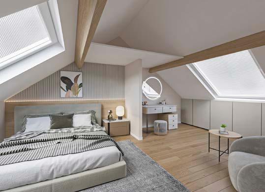 Op de tweede verdieping bevindt zich de open zolderruimte voorzien van twee dakramen, waardoor het licht royaal naar binnen stroomt. De schotten aan de zijkanten bieden fijne opbergruimte voor seizoensspullen. En wat een opties: wordt dit een hobbykamer, een thuiswerkplek, of maak je er eenvoudig een derde slaapkamer van? Laat je creatieve geest het werk doen!