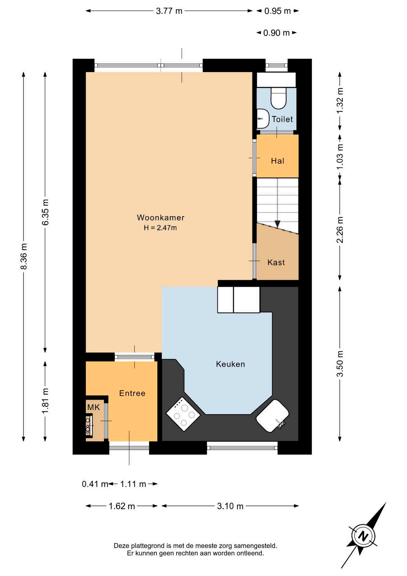 Bij binnenkomst word je welkom geheten in een hal. Hier heb je toegang tot de meterkast en de tuingerichte woonkamer. Deze ruimte ademt licht en gezelligheid dankzij de raampartijen richting de tuin. De neutrale halfopen keuken sluit naadloos aan. Je vindt hier alle ruimte én moderne apparatuur, waaronder een inductiekookplaat, oven en vaatwasser. Kortom, koken wordt hier een feestje. Naast de woonkamer is het toilet en de trap naar de eerste verdieping te vinden.