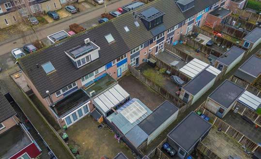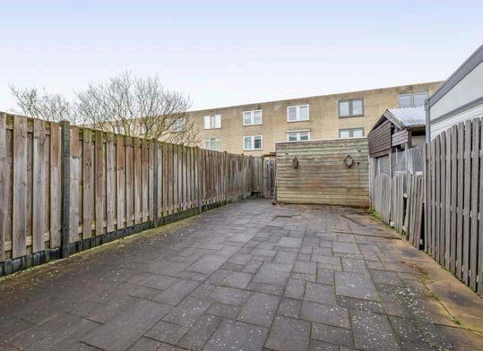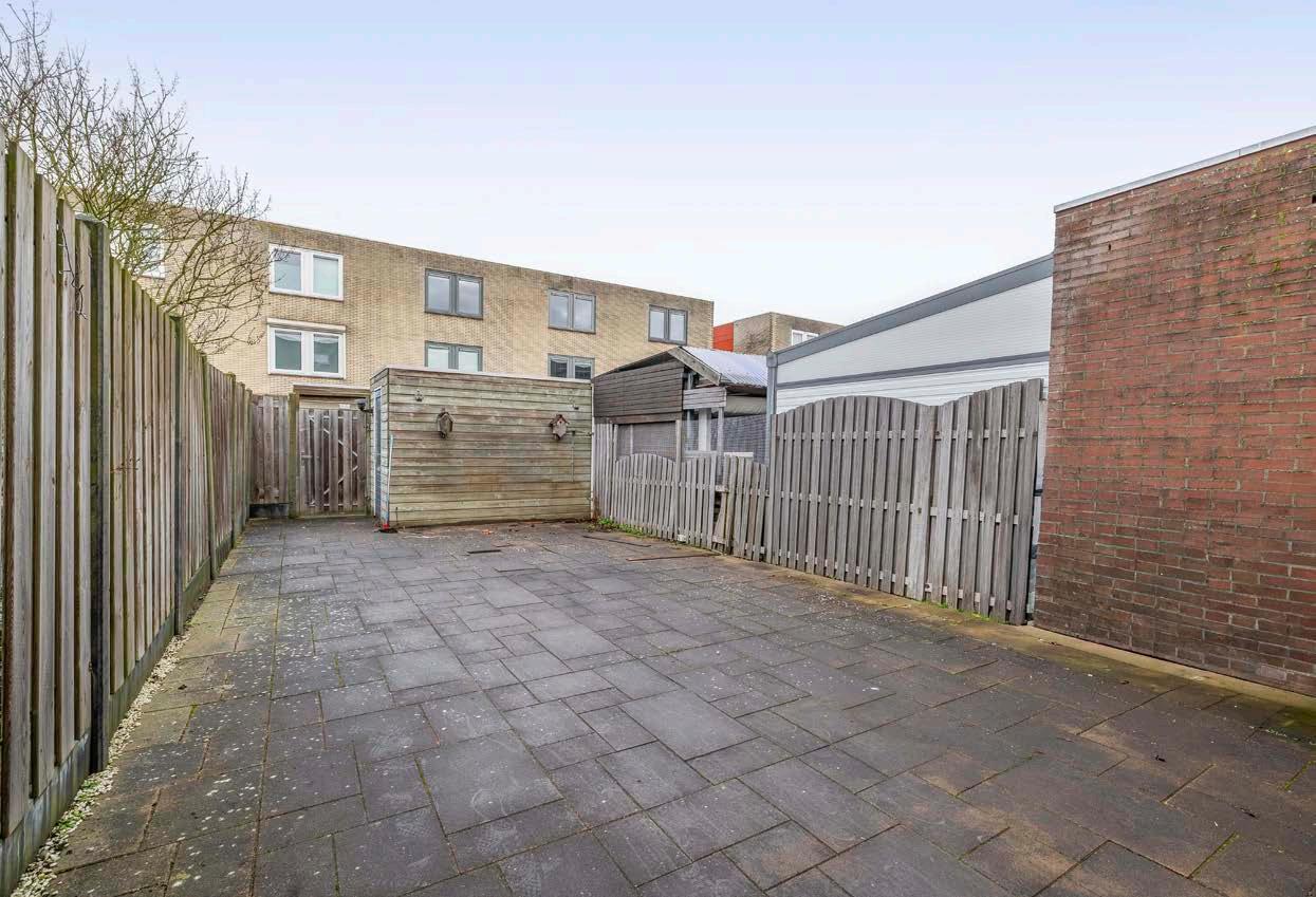 Buiten tref je een onderhoudsvriendelijke tuin met een houten berging voorzien van elektra. De perfecte plek om in de zomer lange avonden door te brengen, terwijl je geniet van een drankje en het zachte zonlicht dat langzaam plek maakt voor sterren. De beschutte ligging biedt privacy zonder in te leveren op comfort.