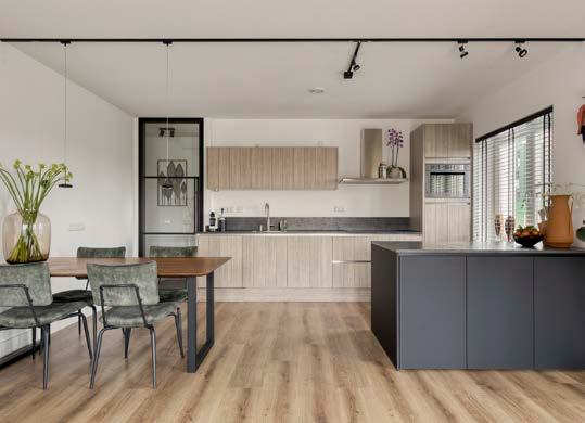 De keuken met ingebouwde stoomoven in het eiland is modern en compleet, perfect om lekker te koken