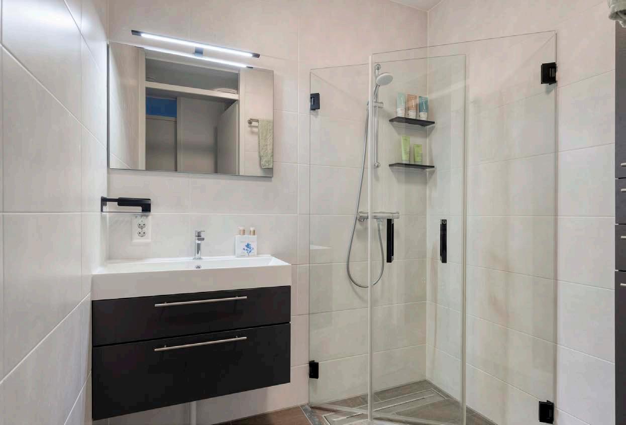 De badkamer is stijlvol en praktisch. Tevens beschikt het appartement nog over een wasruimte en inpandige berging.