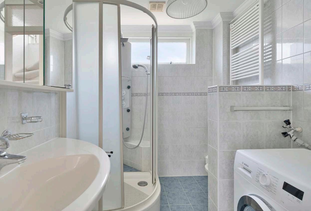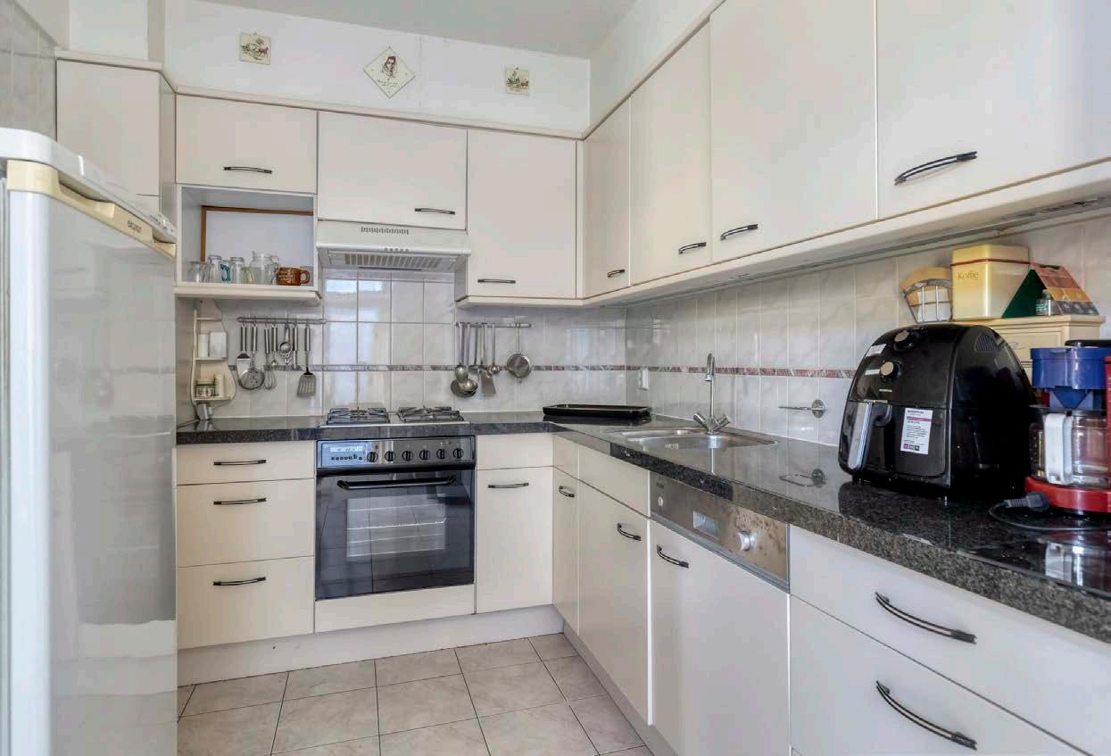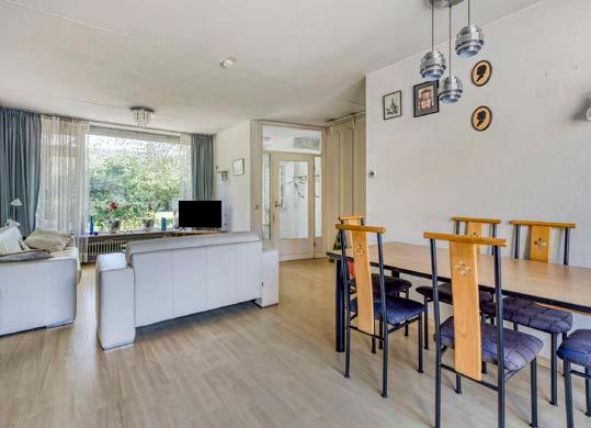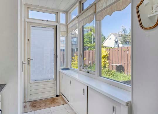 De l-vormige keuken is gedateerd en kun je moderniseren naar eigen idee, terwijl de schuifdeur je uitnodigt om naar buiten te gaan en van de tuin te genieten. Hier draait het om ontspannen wonen.