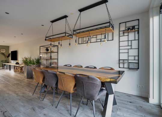 De luxe open woonkeuken is gelegen aan de tuinzijde en een droom voor iedere kookliefhebber. Je kunt hier rekenen op alle denkbare inbouwapparatuur, zoals een kookeiland met inductiekookplaat, hardstenen blad, afzuigkap, vaatwasser, koelkast, vriezer, Quooker, oven en combi-oven.