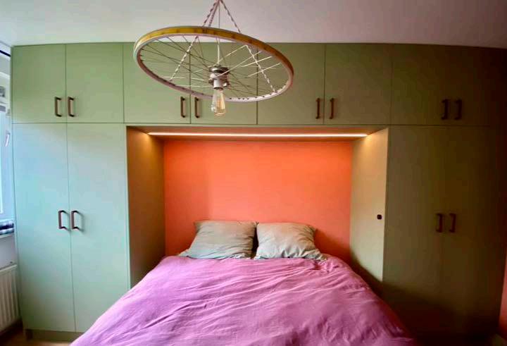 We hebben een heerlijk hoekhuis met uitzicht vanuit het kookeiland op onze groene tuin. Het is een erg fijn appartement met 2 prima slaapkamers, een prima badkamer, een perfecte berging en nog een eigen ruimte waar we de was kunnen doen?