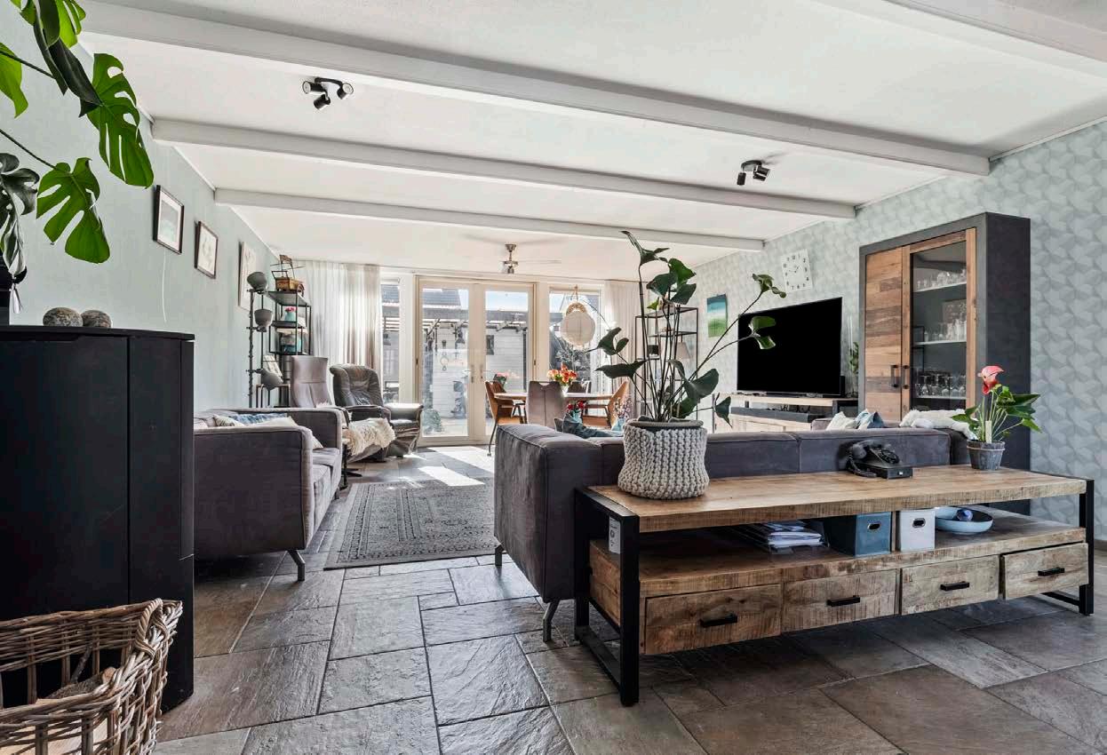 Stap je nieuwe thuis binnen via de handige entree met garderobe. Hier heb je direct toegang tot alle vertrekken van de begane grond, zoals de ruime en lichte woonkamer. Deze woonkamer is dankzij een brede pui met openslaande deuren en een plavuizenvloer met vloerverwarming niet enkel een lust voor het oog, maar ook een oase van comfort.