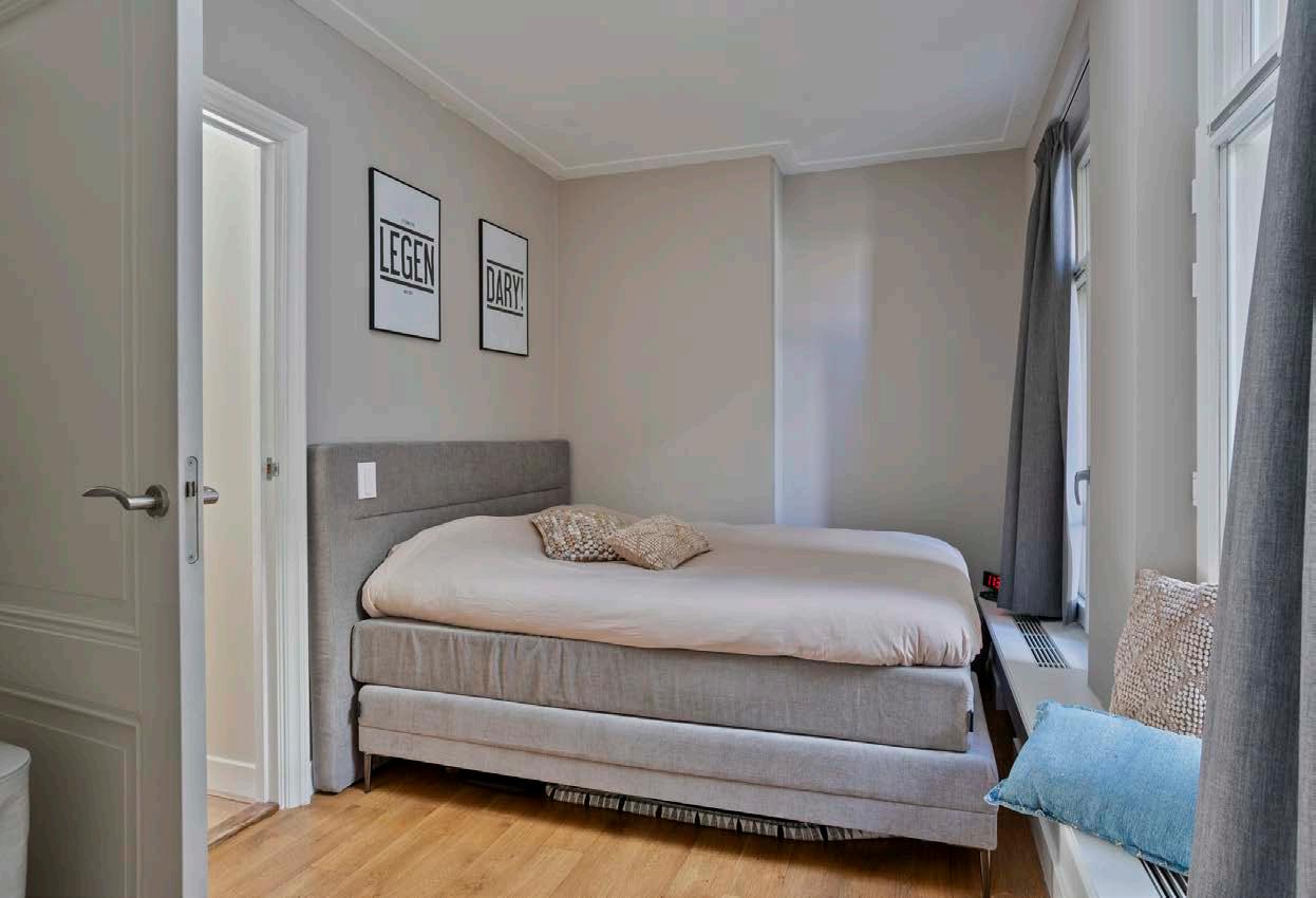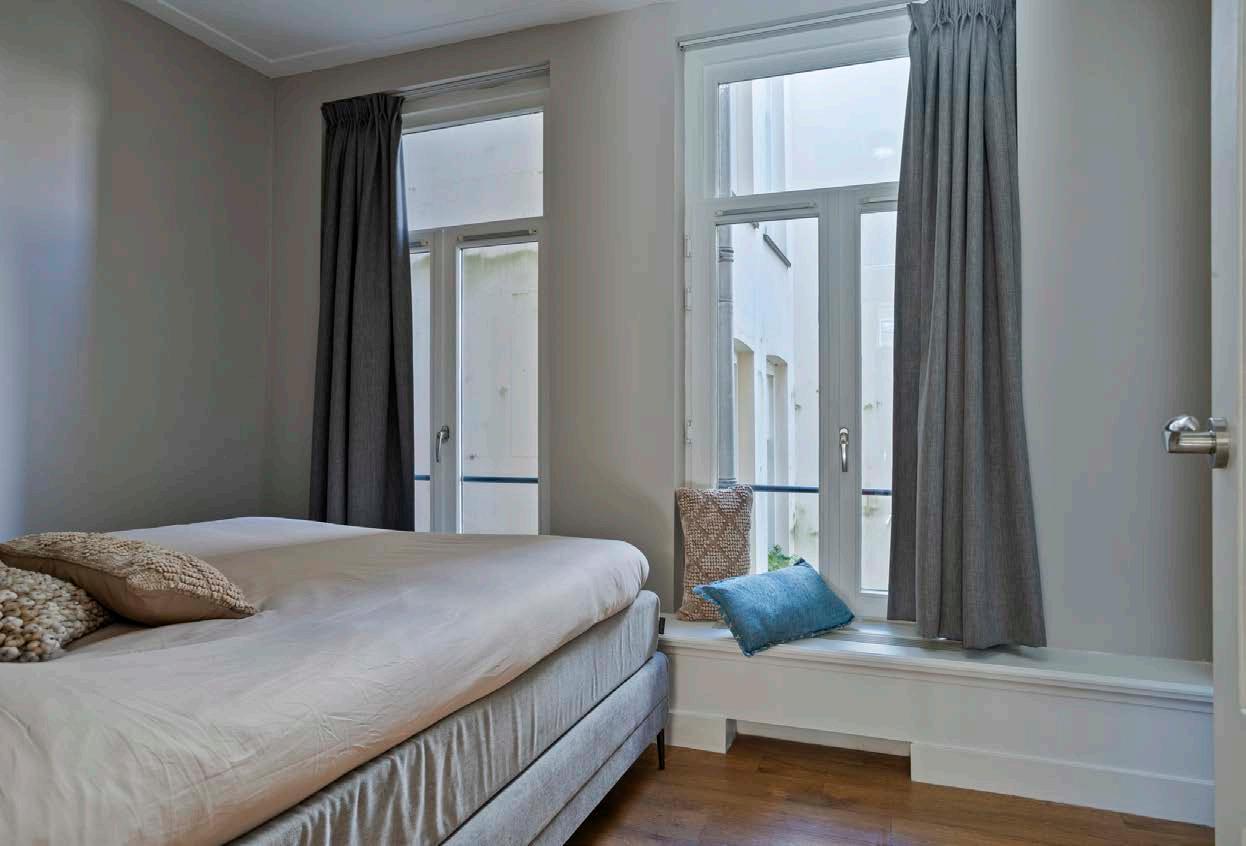 Het appartement beschikt over twee slaapkamers, waarvan één kamer momenteel in gebruik is als werkkamer en kastenkamer.