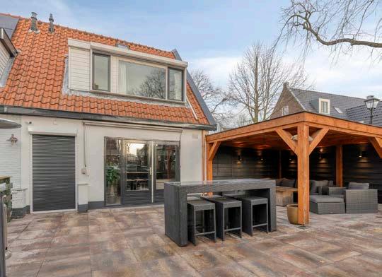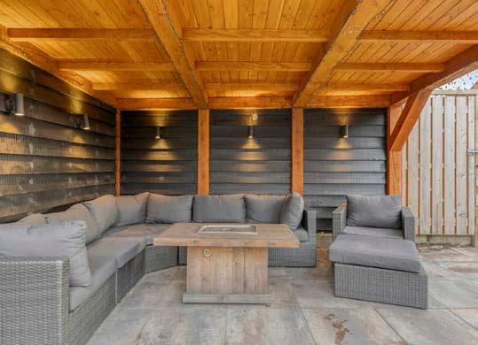 Via de woonkamer toegang tot de ruime tuin met overkapt lounge gedeelte.