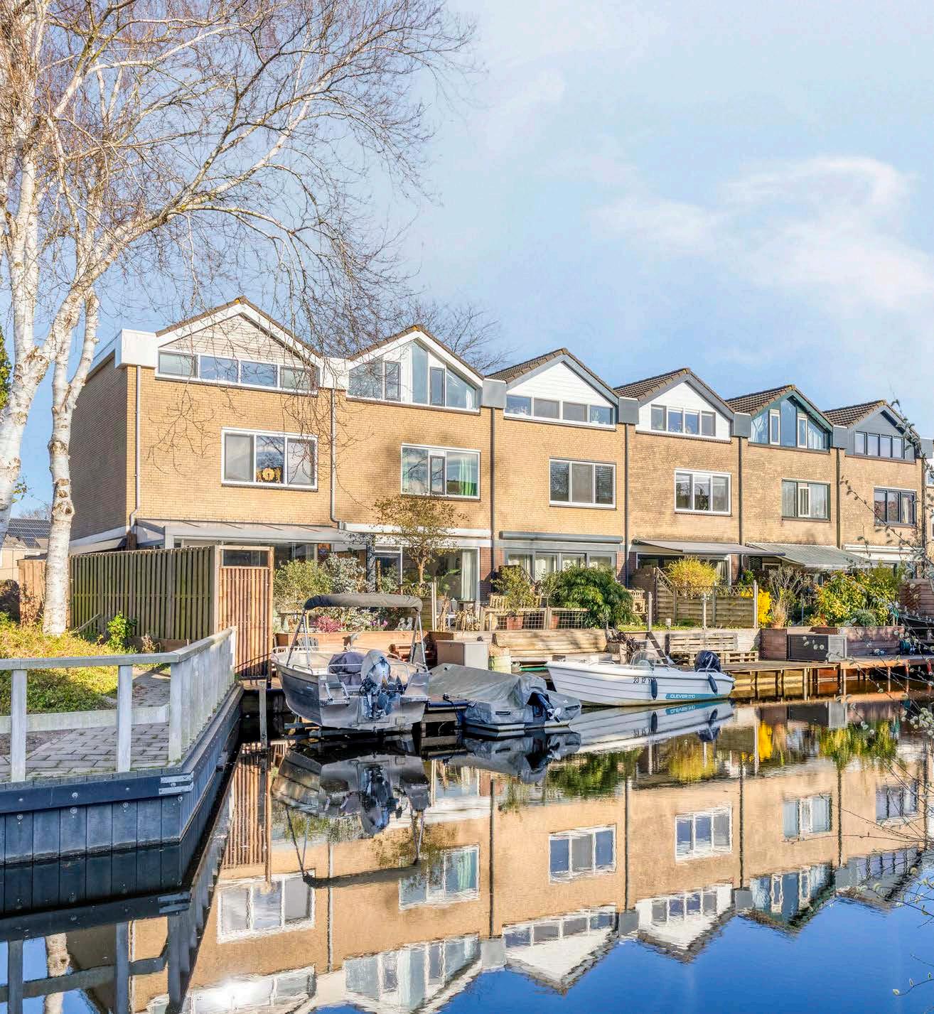 Buiten lonkt de achtertuin, een heerlijke plek om van de zon te genieten – dankzij de ligging op het westen kun je rekenen op gezellige zomeravonden met een drankje in de hand. Bovendien zorgt de directe ligging aan open vaarwater voor een echte plus; via de achtertuin stap je in je boot en zit je binnen 10 minuten op de Jagersplas en kun je zelfs naar het Alkmaarder meer of Amsterdam varen!!