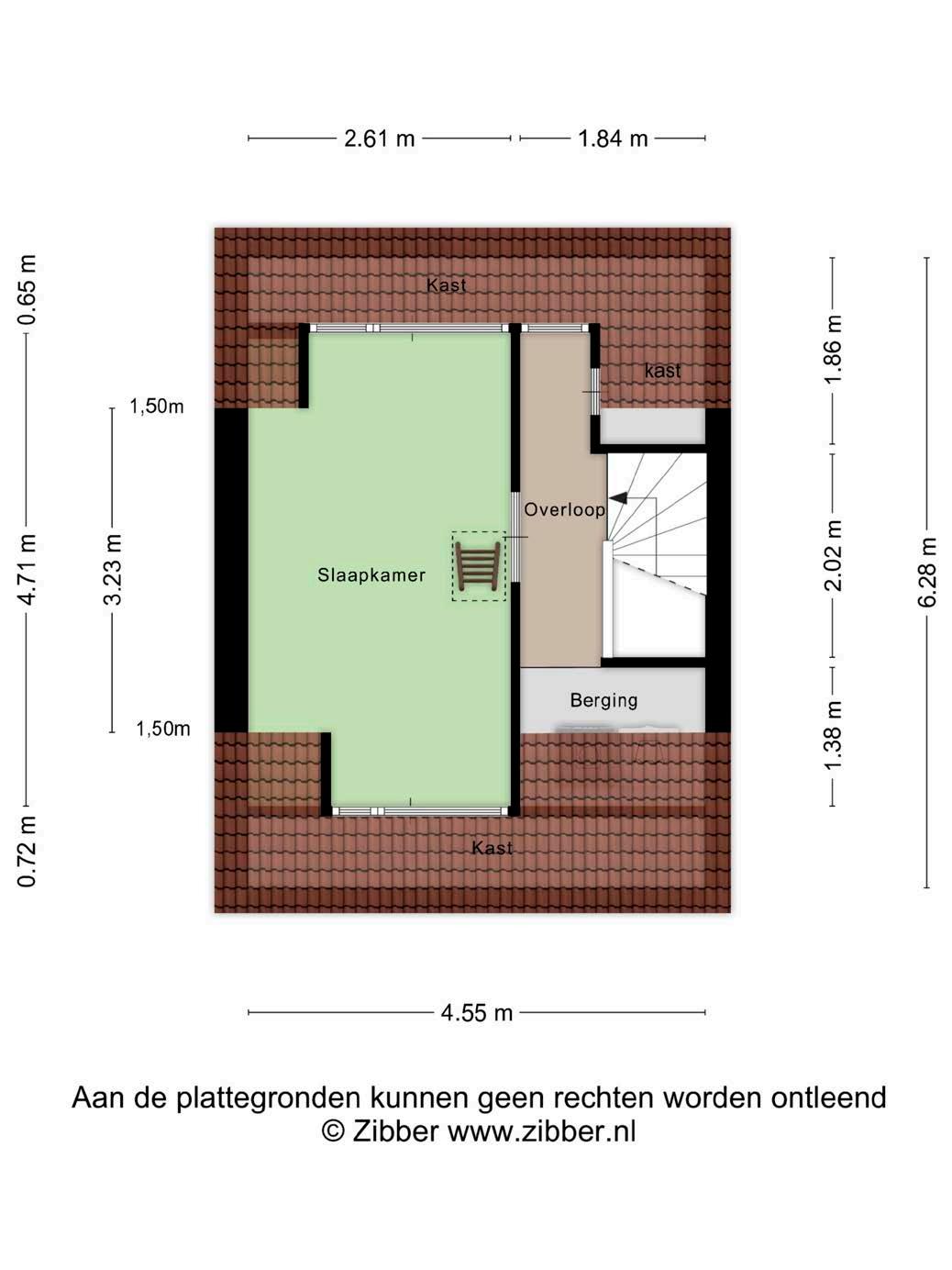 De overloop geeft toegang tot de berging waar zich de witgoedaansluitingen en cv-opstelling bevinden. De ruime slaapkamer is voorzien van een dakkapel aan zowel de voor- als achterzijde; ook hier is weer voldoende natuurlijk licht aanwezig.