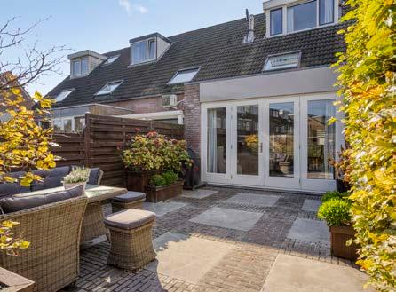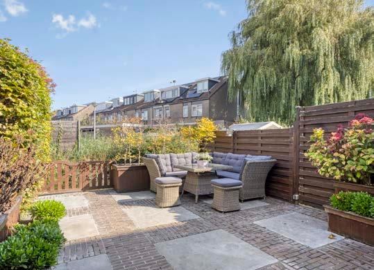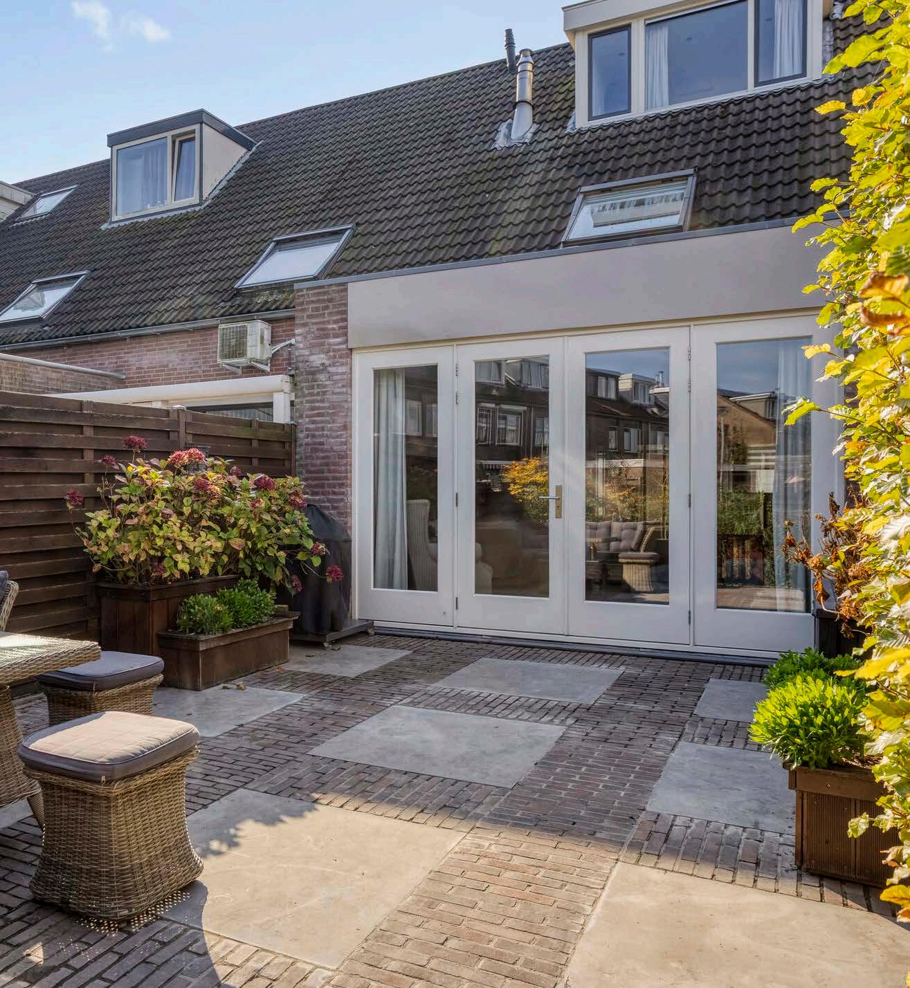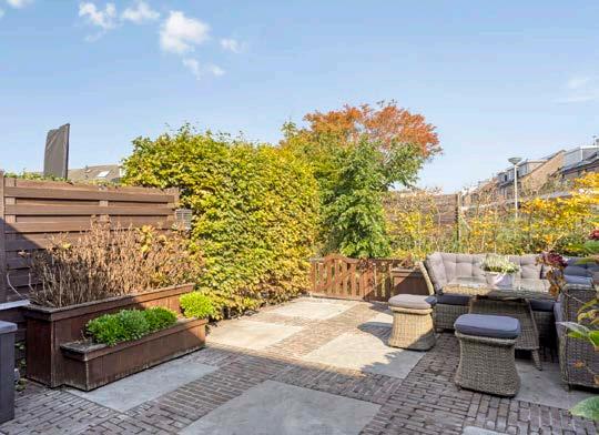 Ondanks dat de tuin op het noorden ligt, zit je er in de zomer tot laat in het zonnetje. Dit komt mede doordat de tuin opgehoogd is en gelijkgetrokken is met het huis. Dus plan die barbecue avondjes alvast maar in! En met een vroeg voorjaarszonnetje zit je heerlijk in de voortuin terwijl de kinderen op straat spelen.