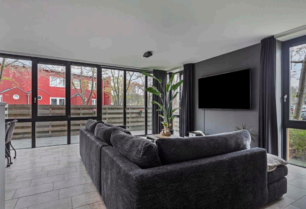 De woonkamer is het hart van het huis, voorzien van grote raampartijen die zorgen voor veel natuurlijk licht. De plavuizenvloer met vloerverwarming garandeert dat je in de winter een comfortabele temperatuur kunt behouden. Deze ruimte is perfect voor zowel ontspanning als sociale activiteiten. Van hieruit heb je directe toegang tot de tuin, een veelzijdige buitenruimte waar je bij mooi weer heerlijk kunt ontspannen.