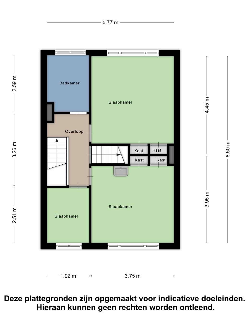 De eerste verdieping biedt een praktische indeling met drie slaapkamers en een ruimte voor een badkamer. Twee slaapkamers bevinden zich aan de voorzijde van de woning, terwijl de derde slaapkamer aan de achterzijde ligt. Elke kamer biedt genoeg ruimte om in te richten naar behoefte, of het nu gaat om slaapkamers, een thuiskantoor of hobbyruimte.