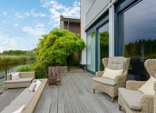 De tuingerichte woonkamer biedt een zee aan ruimte. Dankzij de grote ramen is de woonkamer heerlijk licht. Hier kun je iedere dag opnieuw genieten van het schitterende uitzicht over het water. De gehele benedenverdieping is afgewerkt met een plavuizen vloer inclusief vloerverwarming. Nooit meer koude voeten dus!
