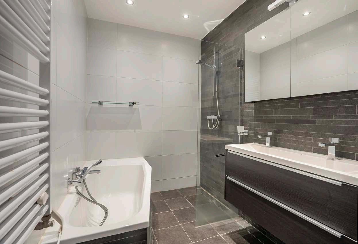 De badkamer heeft een zeer moderne uitstraling en is geheel betegeld. In de badkamer ben je voorzien van een wastafelmeubel met dubbele wastafel, inloopdouche en een ligbad.