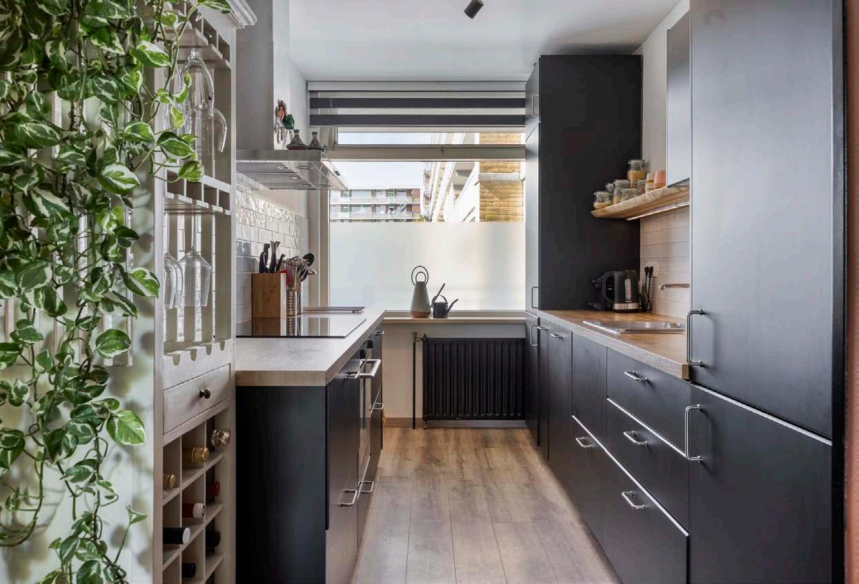 De keuken (2020) ligt aan de voorzijde en is strak en compleet uitgevoerd in rechte opstelling. Je kookt op een 5-pits inductieplaat, hebt een inbouw vaatwasser en een koel-vriescombinatie binnen handbereik. De CV-installatie (ketel uit 2019) is netjes geïntegreerd in de keukenopstelling: praktisch én uit het zicht.