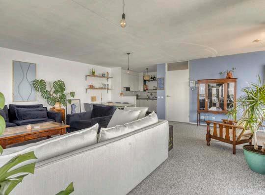 Stap binnen in de ruime entree en merk direct hoe licht en ruim dit appartement aanvoelt. De royale woonkamer met grote raampartijen biedt niet alleen een fijne plek om te relaxen, maar geeft je vanuit elke hoek een spectaculair zicht over het glinsterende Markermeer. Dankzij het uitzicht over het water vanuit elk raam van de woning én het royale inpandige balkon grenzend aan de woonkamer voelt binnen hier altijd als buiten en buiten als binnen.