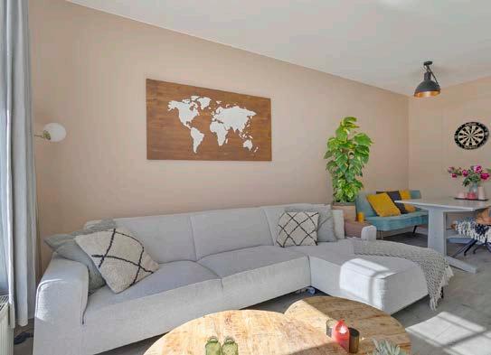 JE PERSOONLIJKE WOONOASE Stap binnen in deze oase van huiselijkheid - een plek die klaarstaat om jouw persoonlijke touch te ontvangen. De woonkamer, uitnodigend en licht, strekt zich uit over 18 vierkante meter van pure gezelligheid waar het natuurlicht speelt met de ruimte. Het is hier waar de dag begint met een ontbijt in de zon en eindigt met een ontspannen avond op de bank.