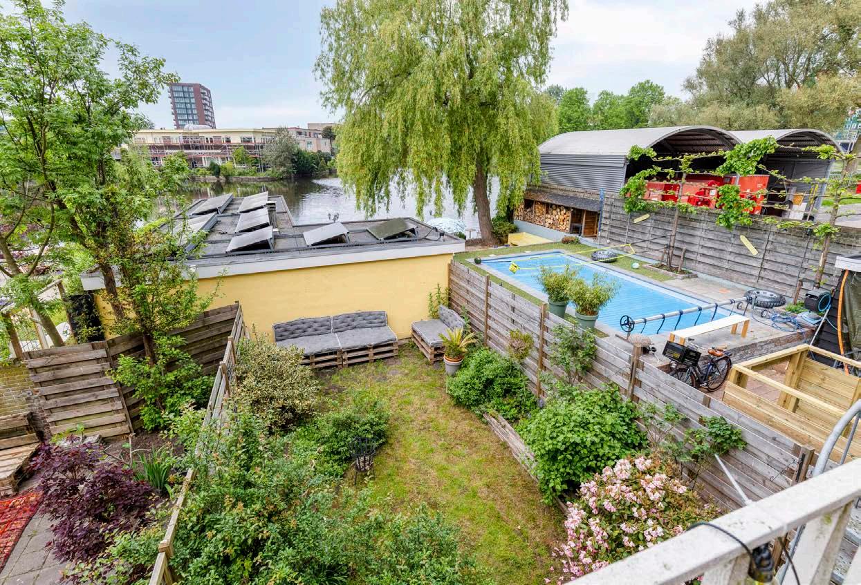 Prachtig uitzicht over het water aan de achterkant, voor bomen en het is een doodlopend stukje, dus er komen alleen mensen die er echt moeten zijn of auto’s die keren. Het huis is warm en licht. Het souterrain hebben wij gewoon als kelder gebruikt, maar je kunt er een hele verdieping extra van maken, als keuken, slaapkamer etc. De tuin is heerlijk en ligt lekker beschut. Leuke, diverse buurt. Voldoende parkeerplek. (parkeervergunning)