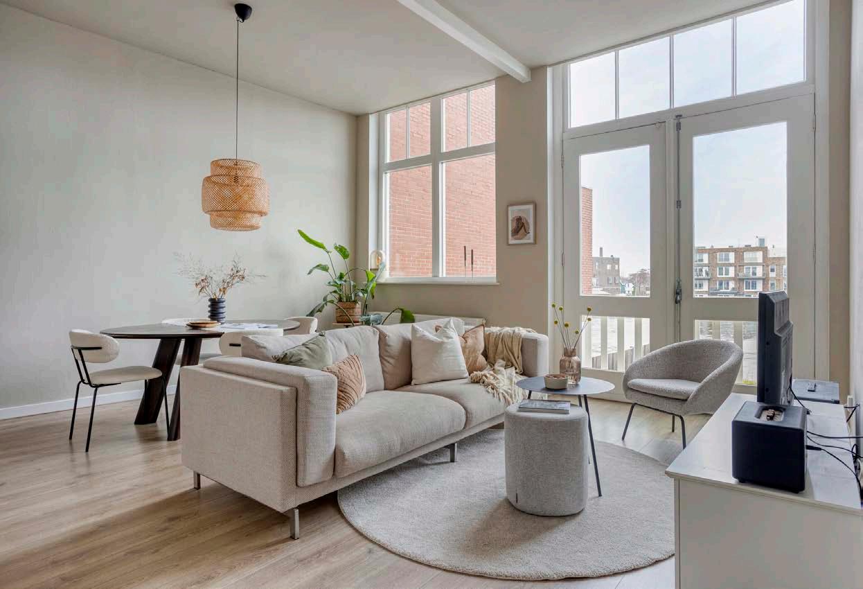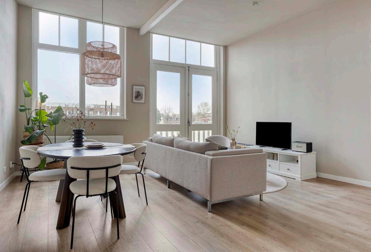 Hoge plafonds en grote ramen maken het licht en ruimtelijk, terwijl de keurige afwerking zorgt dat je er zó in kunt.