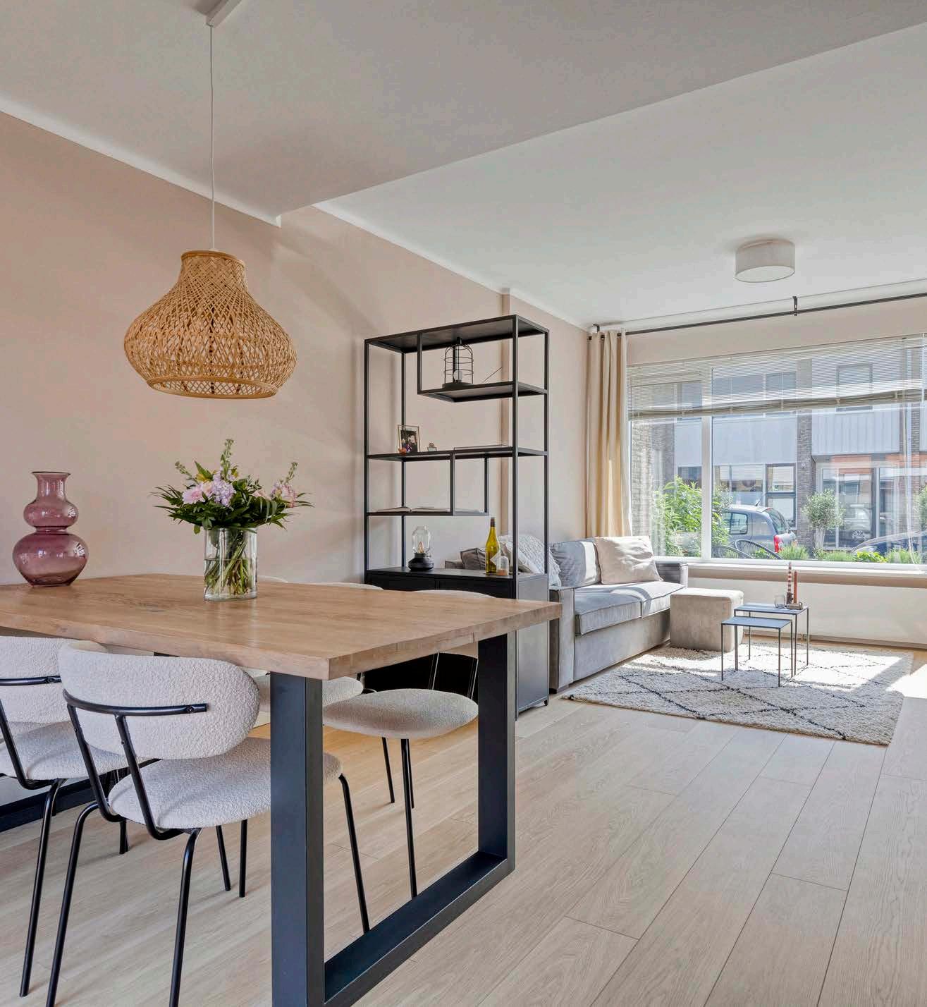 Het is licht, ruim én uitnodigend. De gezellige zithoek aan de voorzijde is perfect voor ontspannen avonden, terwijl de eethoek aan de achterzijde ideaal is voor etentjes met vrienden of romantische diners. Openslaande kunststof deuren verbinden de woonkamer met de achtertuin, waardoor binnen en buiten op een natuurlijke manier in elkaar overlopen.