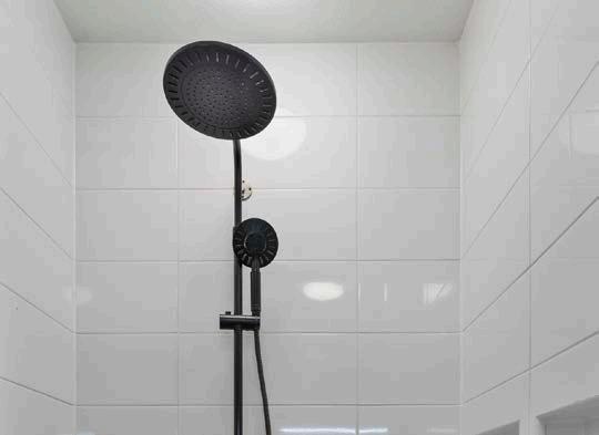De moderne badkamer is een plek van ontspanning, met een inloopdouche die je even alle zorgen van de dag doet vergeten.