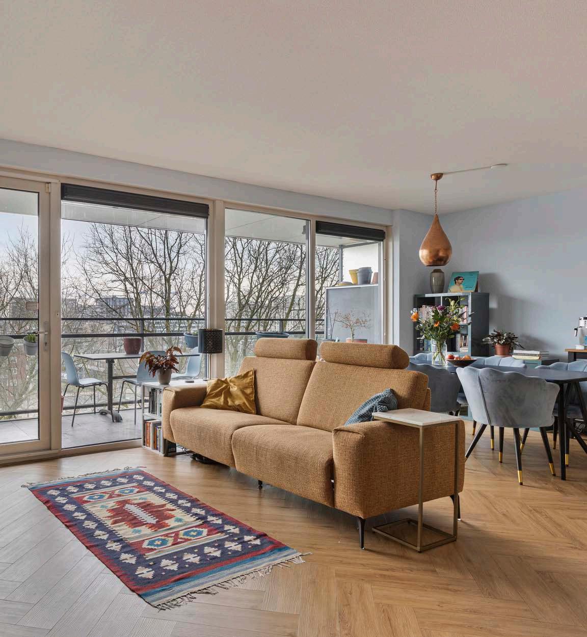 De woning is ruim en licht. Je kunt er heerlijk wonen met twee personen, maar ook als jong gezin heb je genoeg ruimte. De grote woonkamer is zowel fijn voor kleine kinderen, als etentjes met vrienden. Als je de deur uitloopt, kun je koffie drinken op Tussenmeer of boodschappen doen op het Osdorpplein.