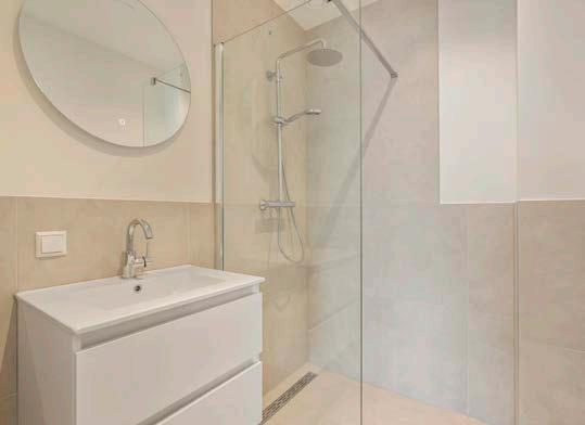 De slaapkamer ademt rust en sereniteit. Met ruimte voor een groot bed, kledingkast én zelfs een werkhoek kun je jezelf hier heerlijk terugtrekken na een lange dag. De badkamer is – net als de rest van het huis – volledig nieuw en luxe afgewerkt. Denk aan een inloopdouche met regendouchekop, modern wastafelmeubel en subtiel ingelegde tegels.