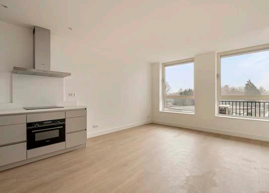 De woonkamer, voorzien van veel natuurlijk licht dankzij de grote raampartijen, vormt het hart van het appartement. Hier creëer je eenvoudig een fijne zithoek en een gezellige eetplek. Vanuit de woonkamer loop je zo naar het balkon, dat ideaal gelegen is op het zuiden. Stel je voor: je dag starten met de eerste zonnestralen of ’s avonds genieten van een glas wijn terwijl je de zon achter de horizon ziet verdwijnen. Dat klinkt toch als ultiem woongenot?