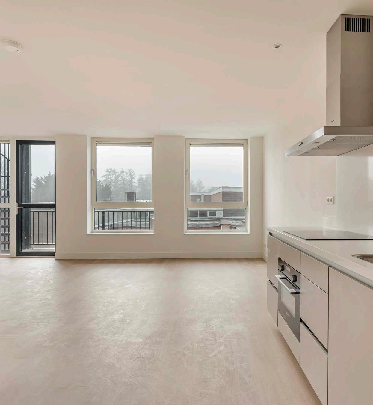 De entree straalt direct rust, kwaliteit en eigentijds wooncomfort uit. Een verzorgde, lichte ontvangst die bewoners en bezoekers op een prettige manier verwelkomt. Hier begint het gevoel van thuiskomen al bij binnenkomst.