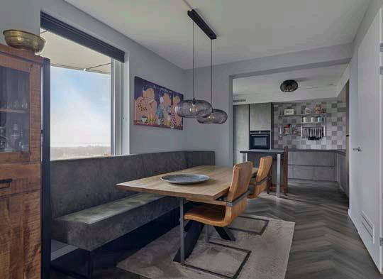 De open keuken is een échte blikvanger. Deze is functioneel en modern ingericht en uitgerust met hoogwaardige inbouwapparatuur, zoals een inductiekookplaat met ingebouwde afzuigkap, combi-oven, koel-vriescombinatie en vaatwasser. Het kookeiland biedt extra werkruimte en maakt het koken eenvoudiger en efficiënter.