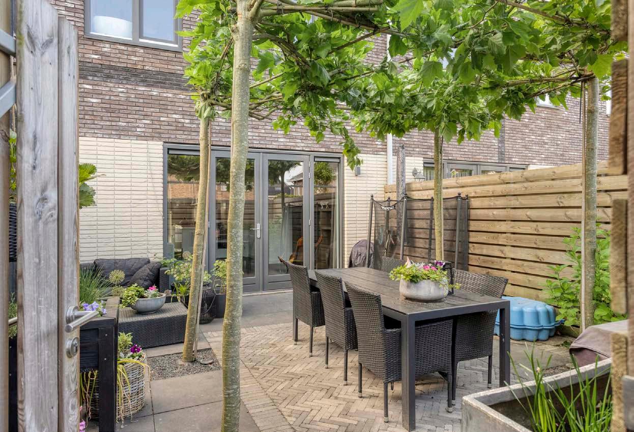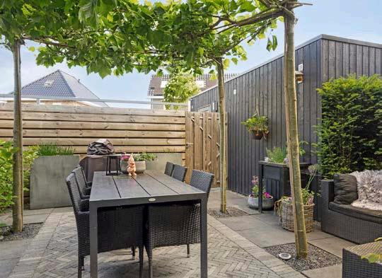 Met een tuin op het zuidwesten kun je optimaal genieten van de zonnige dagen. Hier is met zorg gekozen voor een combinatie van groen en tegels, zodat je zowel een onderhoudsvriendelijke buitenruimte hebt als de mogelijkheid om je creativiteit te gebruiken in het groen. De tuin biedt genoeg ruimte voor zowel een comfortabele loungebank als een eethoek. In de vrijstaande houten berging kun je al je tuinspullen netjes opbergen en aan de achterzijde vind je plaats voor je auto op je eigen oprit. Handig, comfortabel en veilig.