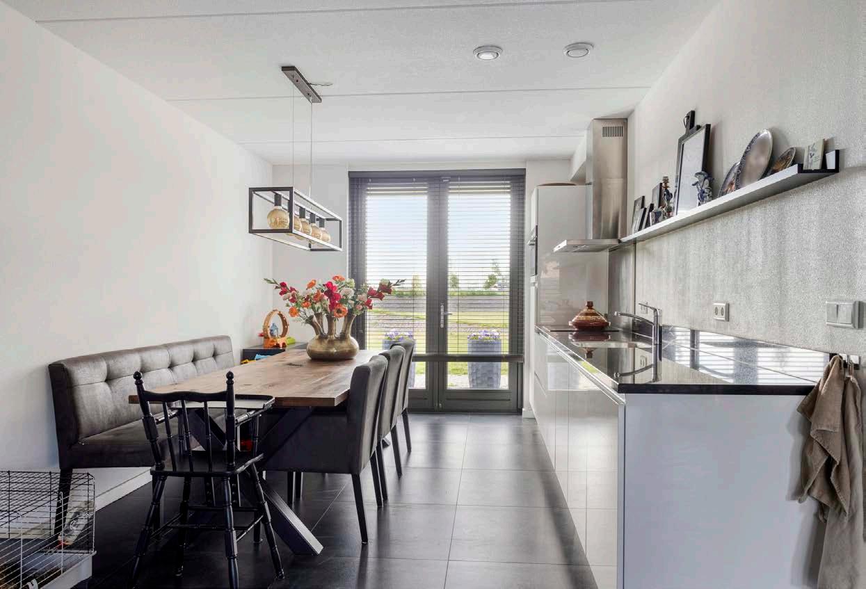 De open keuken aan de voorzijde is niet alleen esthetisch perfect, ook aan functionaliteit geen gebrek. Moderne apparaten zoals een 4-pits inductieplaat, combimagnetron, koelkast en vaatwasser maken koken hier echt een feestje. Met voldoende werkruimte en kastjes is deze keuken helemaal klaar voor jouw culinaire avonturen.