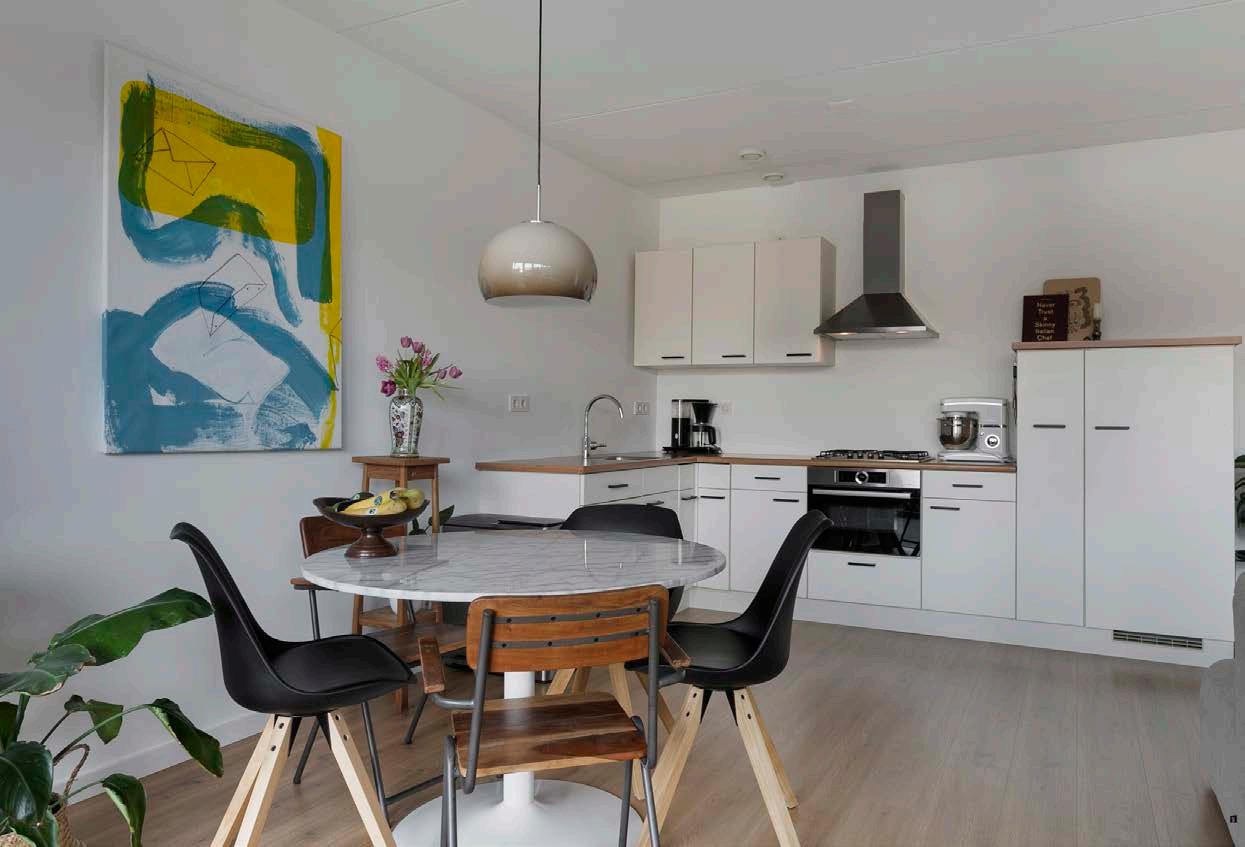 De keuken is onderdeel van de woonkamer. Gezelligheid tijdens het koken. Wie wil dit nu niet?
