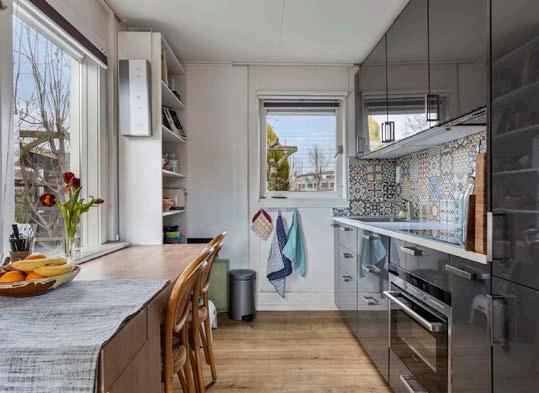 De L-vormige keuken bevindt zich centraal in de woning en is voorzien van diverse inbouwapparatuur. Grenzend aan de keuken bevindt zich de praktische bijkeuken.