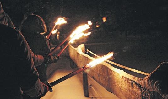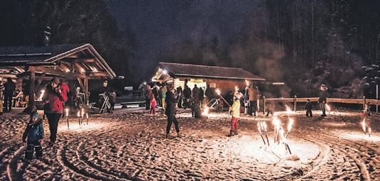 Glühwein und Punsch schme cken einfach besser, wenn über den Tassen die Sterne strahlen und vor den Augen ein Lager feuer brennt. Wenn Funken sprühen und Flammen tanzen, verspricht das ein spannendes Abenteuer. Hinter einem Glühen im Dunkeln verbirgt sich doch immer ein Geheimnis, etwas Mystisches, das es zu erkunden gilt. Die Hörnerdörfer sind weiß Gott reich an geheimnisvol len Mythen und Gottseidank haben sie auch Wanderführer und Sagenerzähler, die davon zu erzählen wissen. Und falls das Glühen von heißen Kohlen stammt, verbirgt sich dahinter einfach was Gutes vom Grill.