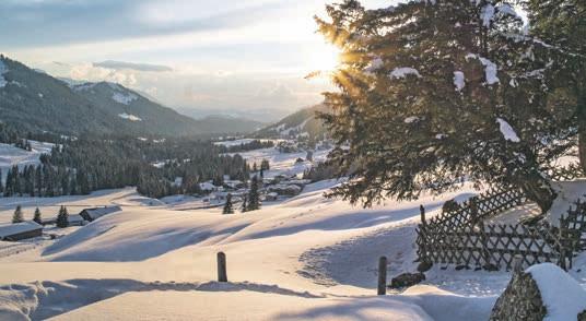 Und wieder wird es Winter. Es ist kalt, ein „Griaß di“ am Morgen steht noch sekundenlang als Atemwölkchen vor den Gesich tern, das Licht glasklar und die Luft riecht nach Schnee… Es ist wieder Zeit für Winter urlaub in den Hörnerdörfern. Warum in den Hörnerdörfern? Weil der Winter hier, im schöns ten Stück Allgäu, alles kann –aber nichts beweisen muss.