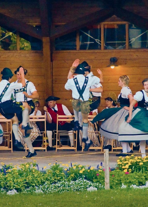 Landesgrenzen und kommt auf einen Sprung ins Allgäu. Hier sagt man nicht „Guten Tag“ sondern „Grüß Gott" oder „Griaß di“. Hier gibt es Berge und Kühe und fantastischen Käse, wie er viel in den Alpen zu finden ist, doch das ist delikater Alp-Käse, keinesfalls Alm-Käse. Die Trachten zieren sich mit gleichem Zwirn doch anderer Stickerei, die Kirchen beten zum selben Gott und verehren andere Heilige, die Wilden Fräulein entspringen denselben Sagen und tragen doch andere Namen. Es ist hierzulande keinesfalls so, dass man das Allgäu kennt, wenn man einen einzigen Allgäuer Ort kennt. Kennt man fünf, kommt man der Sache schon näher. Oder man freut sich daran, in den Hörnerdörfern die ganze Traditionsvielfalt in greifbarer Nähe zu haben und zückt schon mal Stift und Kalender. •