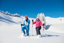 05 Durchs unberührte Weiß. Das geht gut auf „großem Fuße“ mit Schneeschuhen. Doch gewalzte Wege sparen eine Menge Puste.